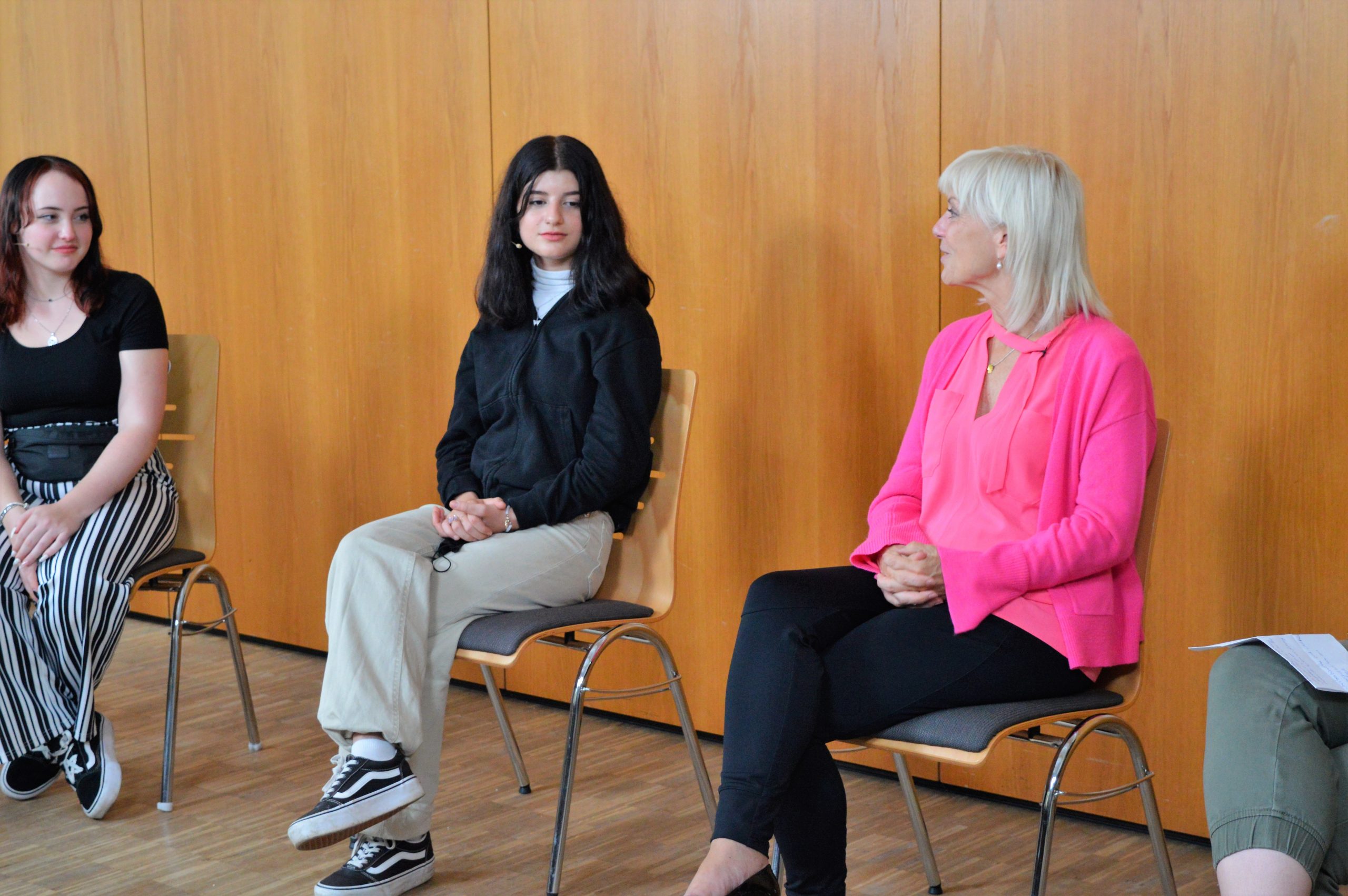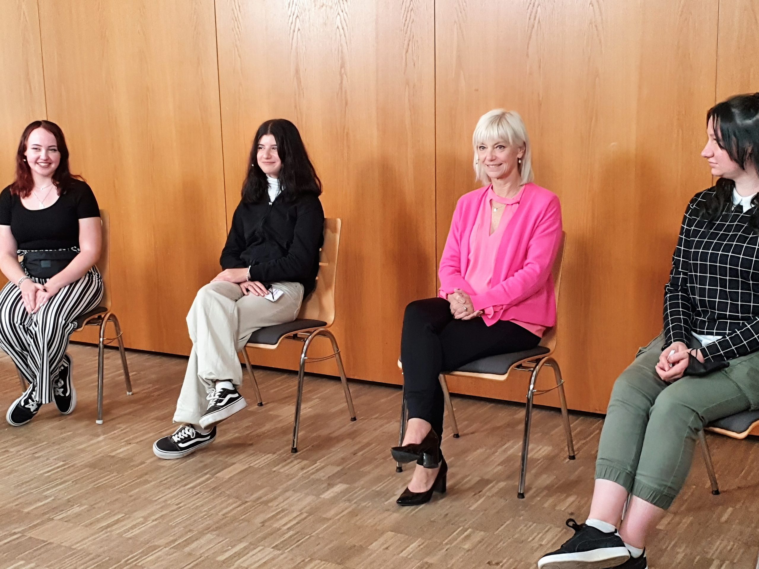 Inzwischen aufgewärmt in der Diskussion, ging es dann mit einer Frage zu gleichgeschlechtlichen Beziehungen in Heimen und dem Umgang damit bzw. was die Ministerin davon halte – woraufhin diese ganz klar antwortete, dass dies kein Thema sein sollte, wenn sich zwei Personen finden und lieben. Doch hier sei auch noch einiges an öffentlicher Aufklärung zu leisten, damit dies auch so akzeptiert würde. Neben Fragen zur 75 Prozent-Regelung, die nun auf 25 Prozent Abgabe ihrer Ausbildungsvergütung herabgesetzt wurde – auch Dank des jahrelangen Einsatzes des Landesheimrates zu dem Thema – war den Jugendlichen auch noch ein Thema sehr wichtig, das dann von Michael Hegert (14), dem jüngsten der Anwesenden, eingebracht wurde: „Denken Sie, dass die Mitarbeitenden in der Kinder- und Jugendhilfe gut genug für ihre Arbeit bezahlt werden?“ Denn alle Jugendlichen der Runde sehen, dass ihre Betreuer:innen viel leisten und die Zeit doch nicht für alles reicht. Familienministerin Trautner verwies darauf, dass der Staat an den Tarifverhandlungen nicht beteiligt sei. Sie teile jedoch die Ansicht, dass soziale Berufe an sich meist nicht angemessen bezahlt werden – erst die Pandemie habe vielen aufgezeigt, was für einen Stellenwert diese Berufe haben. Sie setze sich dafür ein, dass die Anerkennung und Wertschätzung dieser Berufe öffentlich wird und habe auch eine Kampagne dazu gestartet, die „Herzwerker-Kampagne“, die auch um die Berufe in der Kinder- und Jugendhilfe erweitert werden soll.
