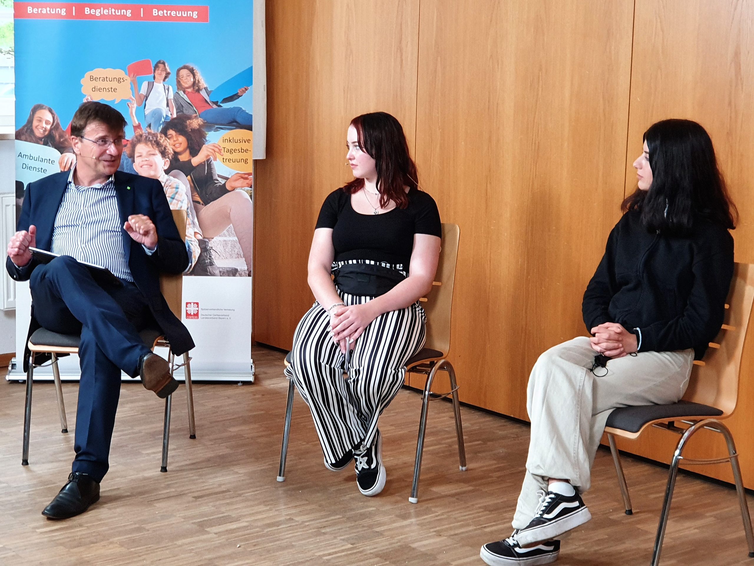 Für Michael Eibl ist es wichtig, dass in den Einrichtungen und Diensten des LVkE verschiedene Formen von Partizipation noch stärker integriert werden. „Die Jugendlichen heute haben gezeigt, wie viel die jungen Menschen zu sagen haben und wie gut es ihnen auch tut, gehört und ernst genommen zu werden. Sie wissen am besten, was sie brauchen und können das auch gut formulieren. Heute haben sie außerdem viel Mut bewiesen und der Ministerin sehr gute Fragen gestellt – Ich bin begeistert und freue mich auf weitere Treffen in dieser Form!“